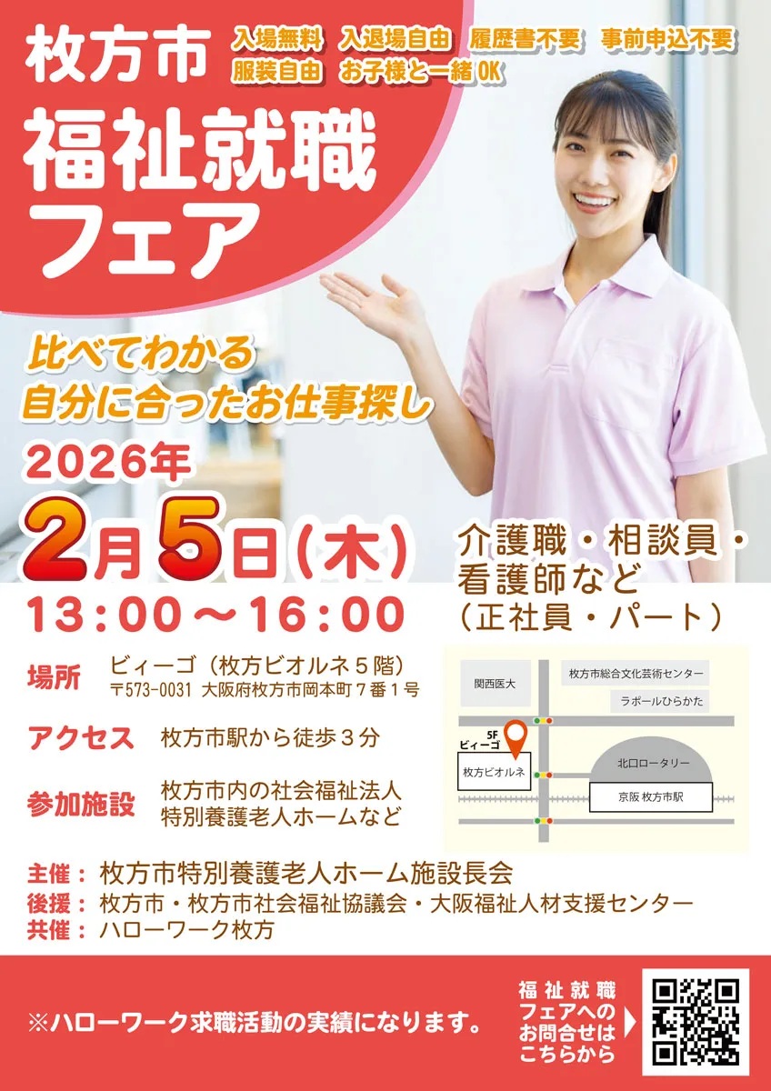 2月5日(木)枚方市福祉就職フェア@ビィーゴ へ出展いたします!